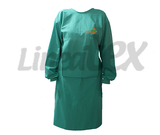 Descripción: Bata clásica quirúrgica , manga larga, cuellos redondo y bolsillo armado en el centro, bordado a la altura del pecho.
